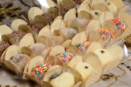 Tipos: Brigadeiro preto, Brigadeiro Colorido, Bem Casado e Beijinho